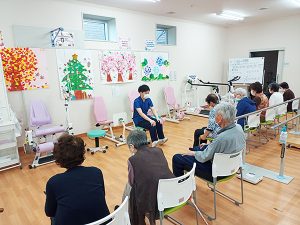 理学療法士が利用者様の身体評価を行う事で、動作練習、筋力トレーニングなど個々の状態に応じた専門性の高いプログラムを行います。